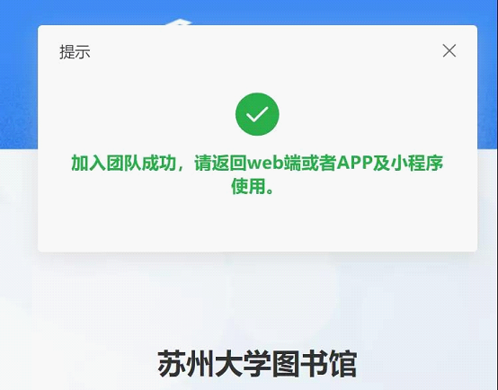 使用注册/已有账号登录成功后,会提示加入团队成功,该账号即可在研学平台使用。