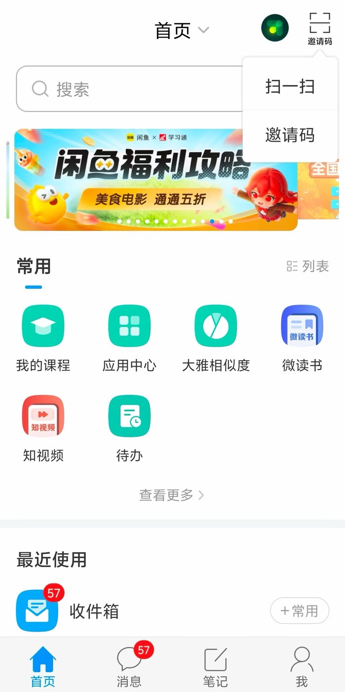 △学习通首页-右上角-邀请码 |