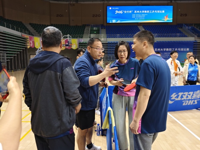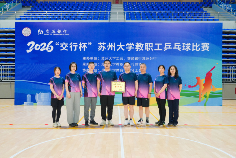 为全面贯彻《全民健身计划纲要》,丰富校园文化生活,促进各分工会交流互动,2026年苏州大学“交行杯”教职工乒乓球比赛于4月18日在独墅湖校区文体中心圆满落幕。图书馆乒乓球队奋勇拼搏,一路过关斩将,最终斩获团体第六名,实现了图书馆教职工乒乓球项目的历史性突破。
