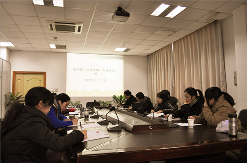 会上图书馆的价值理念与文化传承专题研修小组组长徐旭光、图书馆文化环境专题研修小组组长黄媛丹、数字图书馆文化建设研修小组组长任荣、图书馆与江南文化发展专题研修小组组长马俊芬、大学“书缘”文化专题研修小组组长甘芬兰分别介绍了各小组自成立以来的活动情况,开展活动的心得体会及2013年的工作计划。开展文化研修,是我馆今年在抓数字图书馆建设的同时推进的一项富有专业特点和文化内涵的活动。一年来各研修组结合工作实际将这一活动开展得生动丰富,兼思兼行,各具特色,每次活动所作的书面《报告》都有对图书馆发展的建议,其中一些可行建议已被馆领导采纳,取得了一定的实效。
