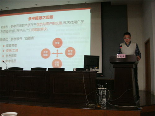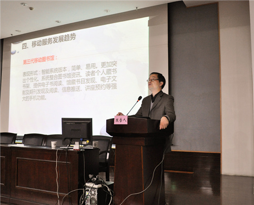 第二议程为主题报告,会议由邱家学馆长主持。四位专家分别从各个角度把移动和图书馆的关系做了精彩的演讲:南大邵波教授作关于《移动服务的发展趋势》的报告,东大李爱国研究馆员作关于《移动互联与参考咨询》的报告,超星叶艳鸣研究馆员作关于《移动环境下的图书馆服务》的报告,苏大周建屏研究馆员作关于《传承东吴精神 展望移动未来》的报告。
