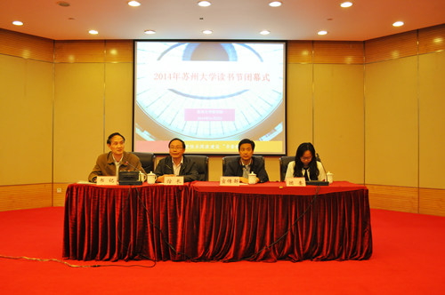 2014年11月5日下午,苏州大学2014年“享受快乐阅读、建设‘书香校园’”读书节闭幕式在炳麟图书馆学术报告厅隆重举行,校党委宣传部新闻中心副主任冯一老师,校团委副书记朱今老师,馆长唐忠明,馆党委书记周建屏,副馆长徐燕,万方数据库公司副总经理陈兵,全体图书馆馆员以及获奖学生代表参加了闭幕式。
