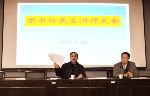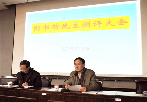 2015年1月8日下午,2014年度图书馆处级领导班子和领导个人民主测评大会在本部馆五楼学术报告厅举行,全体馆领导、全馆职工参加了会议,会议由唐忠明馆长主持。